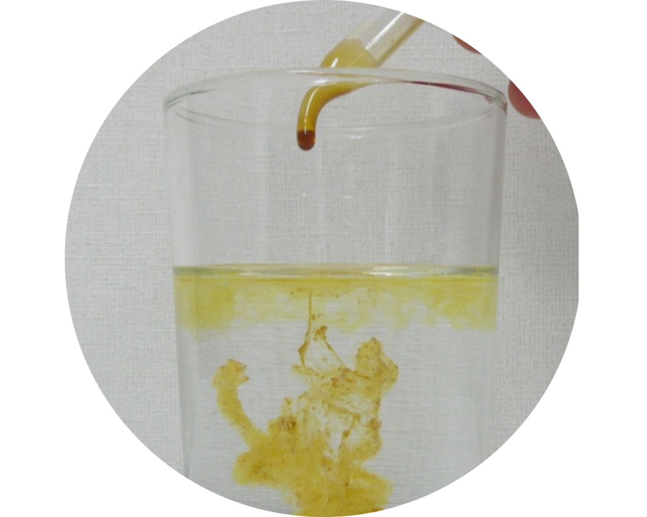 プロポリス液をつくるために原塊から有用成分を抽出します。